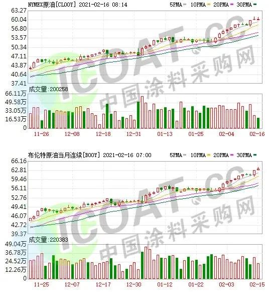 近三個(gè)月國內(nèi)無水氫氟酸價(jià)格走勢大幅上漲,市場價(jià)格為10577.78元/噸,三個(gè)月漲幅高達(dá)26.68%,同比上漲2.02%。國內(nèi)氫氟酸價(jià)格走勢持續(xù)上漲,截止目前國內(nèi)氫氟酸各地區(qū)商談主流價(jià)格在10000-10800元/噸,國內(nèi)氫氟酸交易行情走高為主,近期國內(nèi)氫氟酸現(xiàn)貨供應(yīng)緊張,場內(nèi)價(jià)格走勢持續(xù)上漲。近期華東地區(qū)硫磺價(jià)格“階梯式”上漲,硫磺價(jià)格由993.33元/噸漲至1100元/噸,漲幅10.74%。國內(nèi)硫磺持續(xù)上漲,下游磷肥行業(yè)需求表現(xiàn)穩(wěn)定,港口現(xiàn)貨市場帶動下,國內(nèi)各地區(qū)煉廠價(jià)格穩(wěn)中上行,加上廠家?guī)齑娴臀唬页鲐涰槙?,外盤方面貨緊價(jià)高,挺市態(tài)度明顯,預(yù)計(jì)節(jié)后硫磺市場延續(xù)強(qiáng)勢整理。PC市場行情不斷走高,整體市場呈現(xiàn)上揚(yáng)狀態(tài),PC市場綜合價(jià)格20833.33元/噸,相比1月同期PC市場價(jià)格上漲了10.62%,上漲高達(dá)2000元/噸,春節(jié)采購氣氛一般,貿(mào)易商看漲氛圍濃厚,短期內(nèi)國內(nèi)PC市場重心維持高位,漲勢放緩盤整運(yùn)行。國內(nèi)PVC主流均價(jià)7250元/噸,較周初7175元/噸價(jià)格上調(diào),漲幅1.05%,與去年同期相比上漲6.42%。PVC市場大面積飄紅,各企業(yè)周內(nèi)上調(diào)約50-200元/噸不等,低端價(jià)格逐步向高端價(jià)格靠近,市場重心略上移,價(jià)格多在7000-7500元/噸區(qū)間。山東丙烷市場連續(xù)上調(diào),均價(jià)在4182.50元/噸,上調(diào)幅度在150-200元/噸,上漲4.04%。隨著2月CP價(jià)格出臺,丙丁烷繼續(xù)上調(diào),進(jìn)口氣成本上漲給市場帶來一定提振。通用級ABS主流報(bào)盤價(jià)在17250元/噸左右,較月初均價(jià)水平上漲2.99%。原油持續(xù)走強(qiáng),提振純苯價(jià)格上漲,成本面的支撐來自苯乙烯,外盤期貨高位整理,增強(qiáng)現(xiàn)貨市場信心。有機(jī)硅DMC市場報(bào)價(jià)均價(jià)參考在21433元/噸,與1月末價(jià)格相比,均價(jià)上調(diào)367元/噸,漲幅1.74%。山東某大廠再次上調(diào)有機(jī)硅DMC出廠報(bào)價(jià),兩日上調(diào)幅度500元/噸,其他部分工廠也大多上調(diào)有機(jī)硅DMC出廠報(bào)價(jià)200-300元/噸。本周醋酸價(jià)格節(jié)節(jié)高,醋酐原材料成本震蕩上漲。醋酸企業(yè)停車降負(fù)較多,開工率低位導(dǎo)致供給不足,缺貨現(xiàn)象增多。醋酐成本上漲,上漲動力加大。2月以來,醋酸價(jià)格大漲,甲醇價(jià)格止跌回升,醋酐成本上漲,醋酐上漲動力加大。二氯甲烷在經(jīng)歷暴跌之后,山東地區(qū)率先出現(xiàn)弱勢的反彈行情。山東地區(qū)金嶺化工二氯甲烷價(jià)格累計(jì)上漲80元/噸。無論是化工品的漲價(jià),還是家電等產(chǎn)品的漲價(jià),背后推手基本都是上游原料價(jià)格的調(diào)漲。海爾空調(diào)此前發(fā)給經(jīng)銷商的一則通知中,更是直接用幾個(gè)數(shù)據(jù)概括了漲價(jià)的原因:銅漲了30%,鐵漲了30%,塑料漲了35%,鋁漲了37%,不銹鋼暴漲45%,鋅合金漲了48%……而眾多宣漲的化工企業(yè)漲價(jià)函中也明確表示,漲價(jià)原因主要是上游原材料貨源緊缺或是價(jià)格連續(xù)上調(diào),企業(yè)為了繼續(xù)提供產(chǎn)品和服務(wù),只能無奈漲價(jià)。多家研究機(jī)構(gòu)認(rèn)為,原油價(jià)格上漲成為支撐化工品價(jià)格上漲的主因,兩者呈現(xiàn)正相關(guān)趨勢。數(shù)據(jù)顯示,布倫特原油期貨今年以來漲幅達(dá)19.7%;紐約輕質(zhì)原油期貨今年以來漲幅達(dá)20%。醋酸、乙二醇、草甘膦、化纖、尿素等均出現(xiàn)不同程度上漲。2020年國內(nèi)多數(shù)化工產(chǎn)品價(jià)格下跌到歷史低位,行業(yè)開工率較低,并引發(fā)被動去庫存。從目前國內(nèi)市場看,終端需求大幅復(fù)蘇,下游開啟補(bǔ)庫存周期。而海外疫情反復(fù)導(dǎo)致部分海外化工裝置停產(chǎn),國內(nèi)化工產(chǎn)品的海外訂單需求進(jìn)一步提升,下游訂單集中大爆發(fā),拉動化工原材料需求,眾多化工品價(jià)格均明顯上漲。