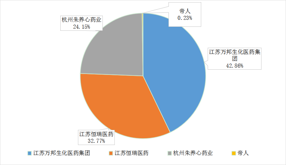其中,江蘇萬邦生化醫(yī)藥集團、江蘇恒瑞醫(yī)藥和杭州朱養(yǎng)心藥業(yè)3家的銷售占領(lǐng)了大部分的非布司他市場。江蘇萬邦生化醫(yī)藥集團在2018年超越江蘇恒瑞醫(yī)藥(表2),占據(jù)國內(nèi)首位,此后市場占有率逐漸拉開差距。