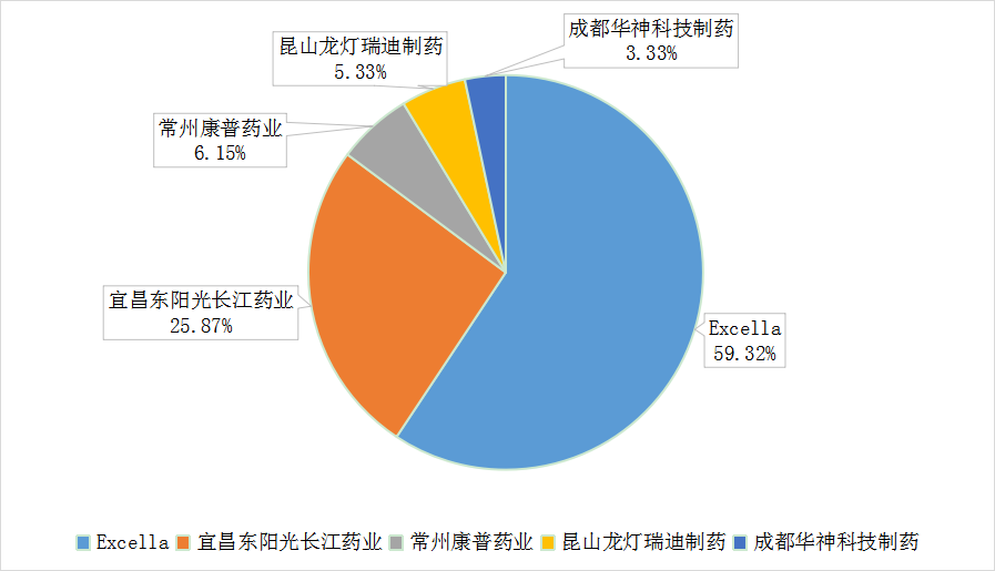 其中,德國Excella、宜昌東陽光長江藥業(yè)、常州康普藥業(yè)、昆山龍燈瑞迪制藥4家的銷售占領(lǐng)了大部分的苯溴馬隆市場。