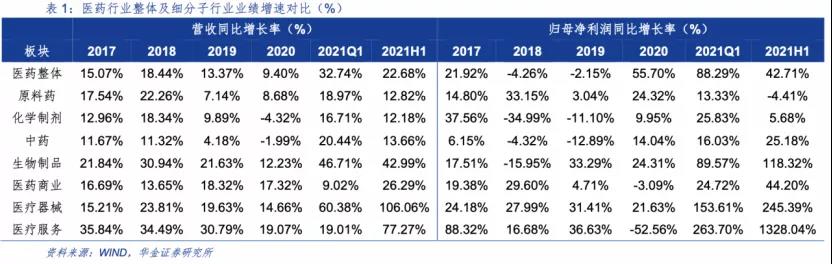 回顧今年醫(yī)藥行業(yè)整體情況,根據(jù)國元證券統(tǒng)計,經(jīng)過一年疫情的洗禮,整個醫(yī)藥工業(yè)板塊營收和凈利潤同比增長都出現(xiàn)了一個歷史新高。這其中,除了去年疫情帶來的低基數(shù)效應,疫情后開展的各種醫(yī)療基建以及釋放的健康需求正在慢慢提升,另外去年醫(yī)藥公司在一二級市場融來的錢,也在一步步轉(zhuǎn)化成各項業(yè)務的落地。