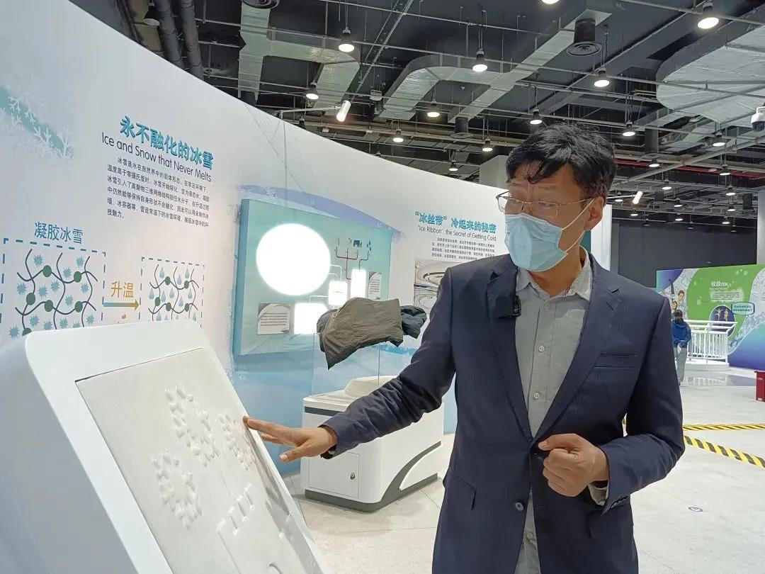 給水凝膠加上一層自制冷裝置,就能做出冰板、冰墻。升溫時水不滴落,可以用于制作精美浮雕——這是世界上現(xiàn)有的唯一可長期在冰上保存浮雕的技術(shù)方案。在科技館中展出的冰板上,就雕刻著“城樓”和“雪花”。雖然摸的人不少,但圖案的形狀一直保持清晰。