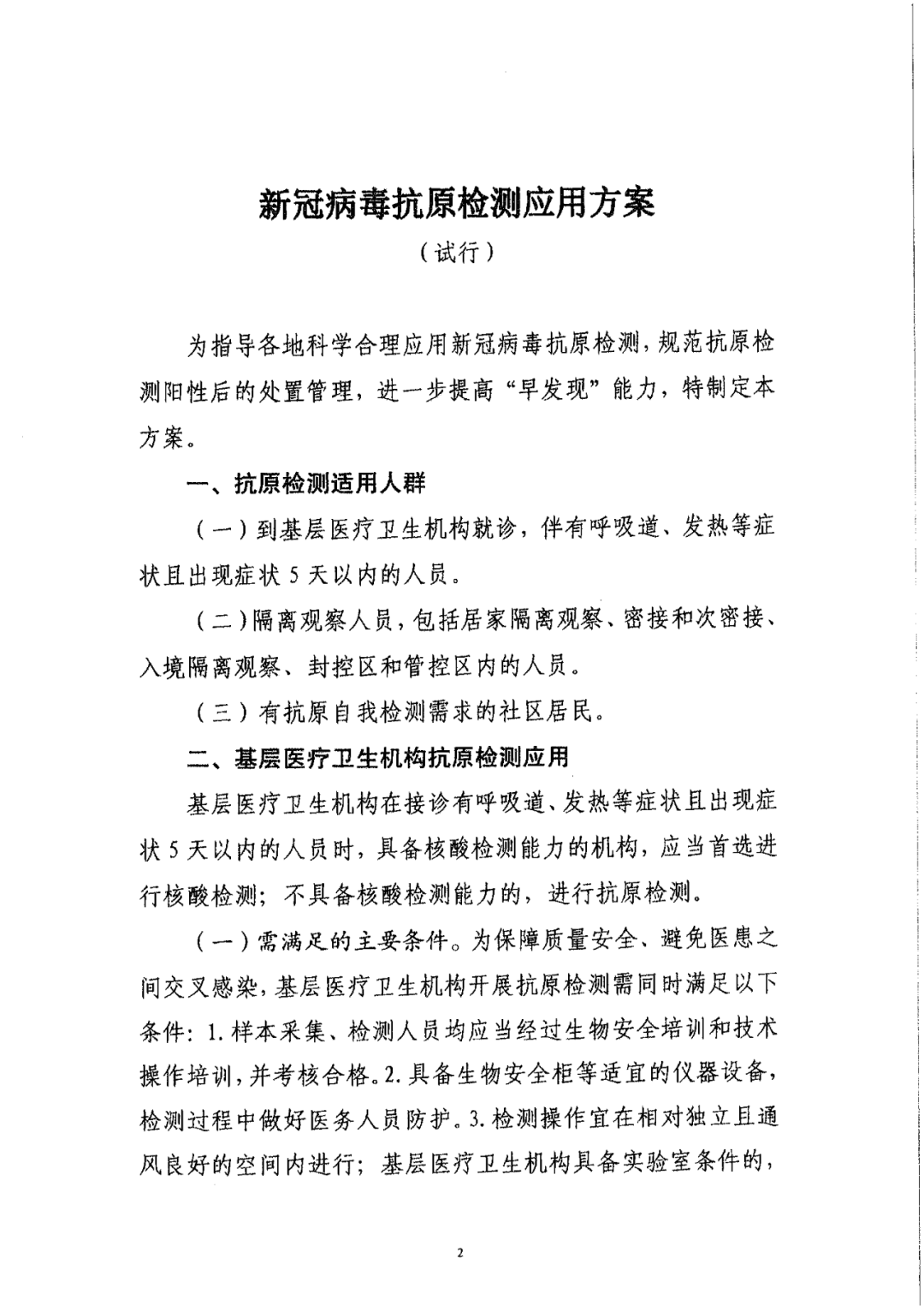 附《關(guān)于印發(fā)新冠病毒抗原檢測應用方案(試行)的通知》原文。