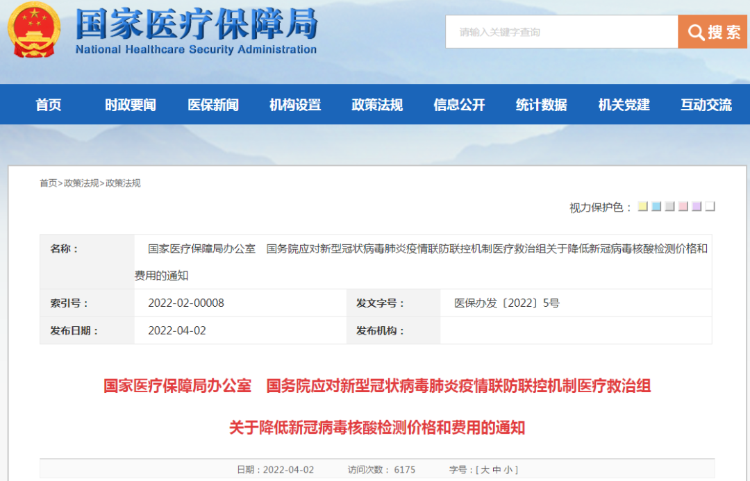4月2日,國家醫(yī)保局發(fā)布了關(guān)于降低新冠病毒核酸檢測價(jià)格和費(fèi)用的通知。
