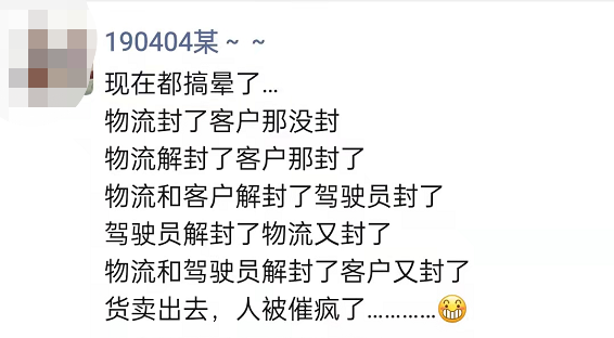 比如有些地方不斷加碼通行要求,導(dǎo)致在高速路口長(zhǎng)時(shí)間滯留;多地拒絕上海牌照貨車(chē)進(jìn)入,即便健康碼、核酸報(bào)告、抗原檢測(cè)和通行證都齊全仍被勸返或隔離;外地尤其是上海過(guò)來(lái)的貨車(chē),下高速流程手續(xù)非常復(fù)雜,拍照、換證實(shí)際上都需要司機(jī)下車(chē),存在比較大的接觸風(fēng)險(xiǎn),登記完又封門(mén)不讓下車(chē),實(shí)際上有些形式化;因有司機(jī)確診,多個(gè)高速服務(wù)區(qū)關(guān)閉,上海境內(nèi)也多區(qū)封閉,司機(jī)只好停應(yīng)急車(chē)道,好幾公里,很危險(xiǎn);同時(shí),因沒(méi)有飯店和超市營(yíng)業(yè),滯留高速路和公路上的司機(jī)們無(wú)處購(gòu)買(mǎi)食物和飲用水;有人天天啃方便面,啃得兩眼冒火星了。
