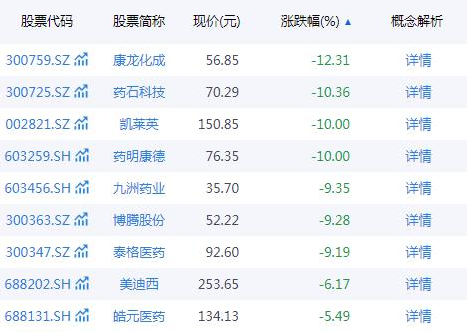 另外,受到影響的不只有藥明康德,截至午間開盤,多家CRO藥企均大跌:康龍化成跌13.92%報55.78元;藥石科技跌11.03%報69.75元;凱萊英跌10%報150.95元;藥明康德跌10%報76.35元;九洲藥業(yè)跌9.83%報35.51元;博騰股份跌8.56%報52.63元;泰格醫(yī)藥跌7.96%報93.85元;美迪西跌5.91%報254.35元。