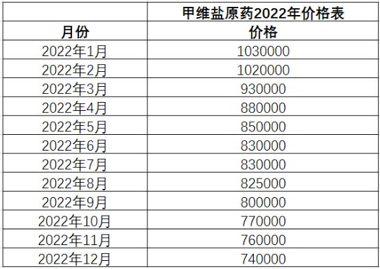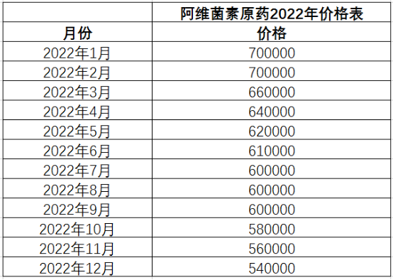 作為全球用量最大、使用技術(shù)最成熟的農(nóng)藥品種之一的阿維菌素和甲維鹽,價(jià)格的起伏也牽動(dòng)著行業(yè)人士的心,從2022年年初開(kāi)始,甲維鹽和阿維菌素的價(jià)格不斷下滑,甲維鹽的原藥價(jià)格從2022年初的103萬(wàn)元/噸下滑至12月的73萬(wàn)元/噸;阿維菌素的原藥價(jià)格呈下跌勢(shì)頭,連續(xù)6個(gè)月持續(xù)下調(diào),從2022年1月份的70萬(wàn)元/噸下滑至12月份的54萬(wàn)元/噸。