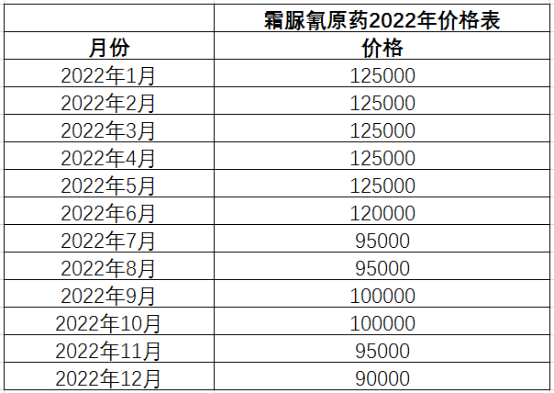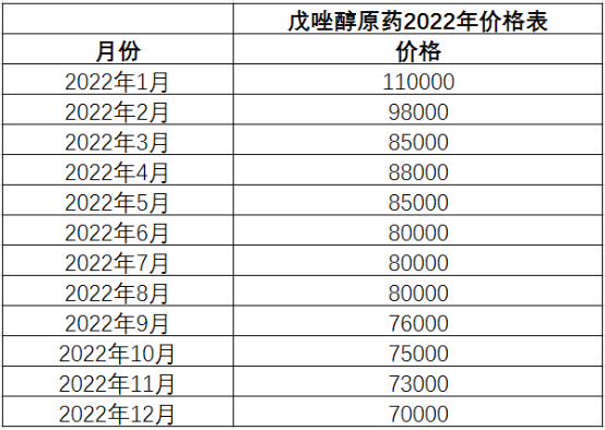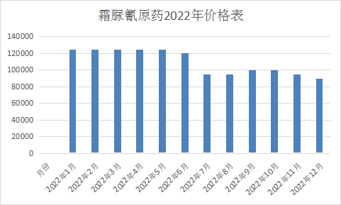 相比于除草劑和殺蟲(chóng)劑,以往的殺菌劑市場(chǎng)原藥價(jià)格都相對(duì)較為穩(wěn)定,然而在2022年同樣受到多方面影響下的殺菌劑市場(chǎng)下跌品種也逐漸增多,跌勢(shì)較為明顯的有霜脲氰和戊唑醇,霜脲氰原藥價(jià)格從2022年1月份的12.5萬(wàn)元/噸下滑至12月的9萬(wàn)元/噸,其中7月份價(jià)格下滑最明顯;戊唑醇原藥價(jià)格從2022年1月份的11萬(wàn)元/噸下滑至12月的7萬(wàn)元/噸。