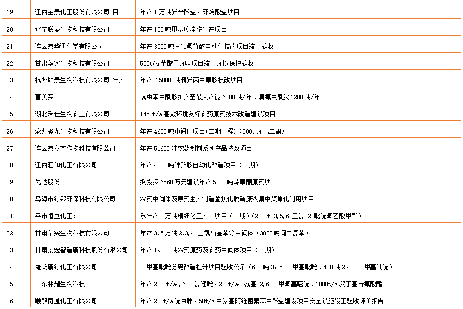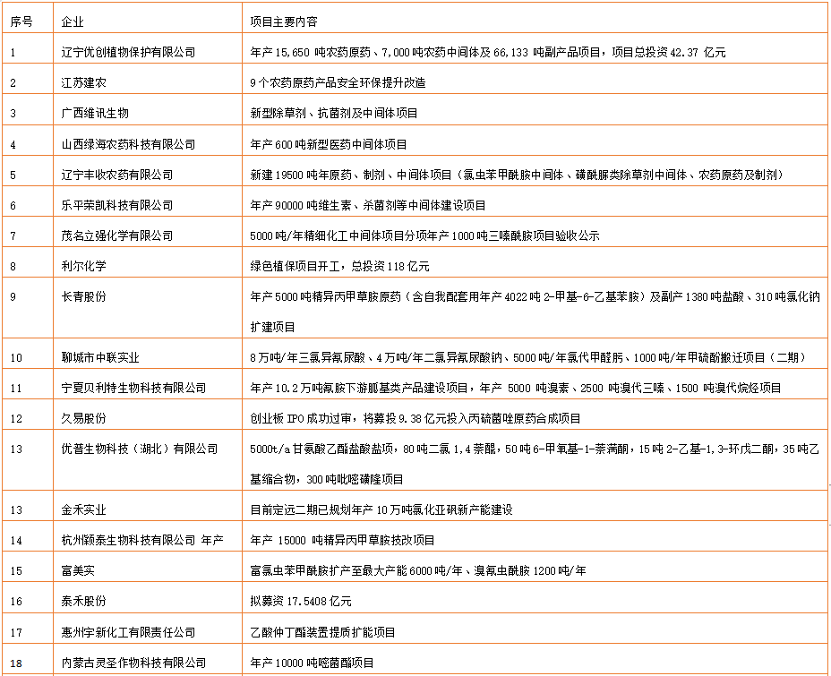 4月份我國農(nóng)藥原藥(中間體)項目匯總