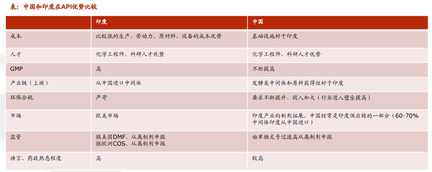 民生證券總結(jié)了中國和印度在關(guān)鍵原料藥保證上的一些優(yōu)缺點(diǎn)。印度算是新興市場里制藥水平算非常高的。這個對比雖然不能完全等用在CXO行業(yè),但大抵上反映了有些中國所特有的優(yōu)勢是其它地區(qū)很難替代的。