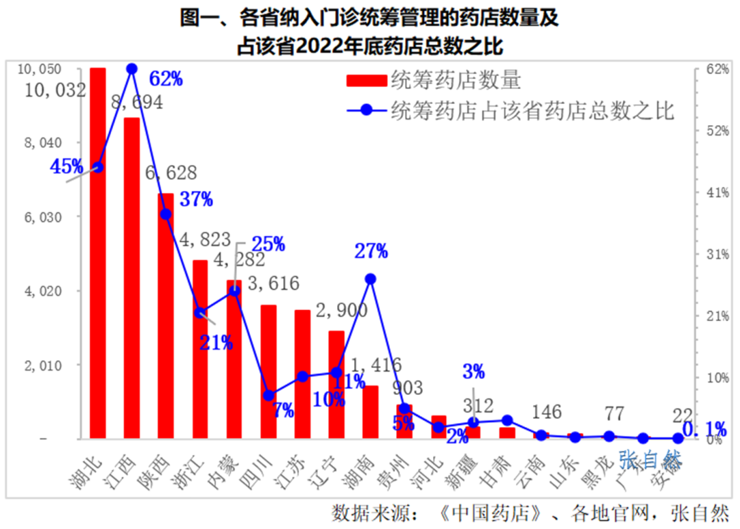 湖北納入統(tǒng)籌管理的藥店最多,也是唯一過(guò)萬(wàn)家的省份,達(dá)10,032家。