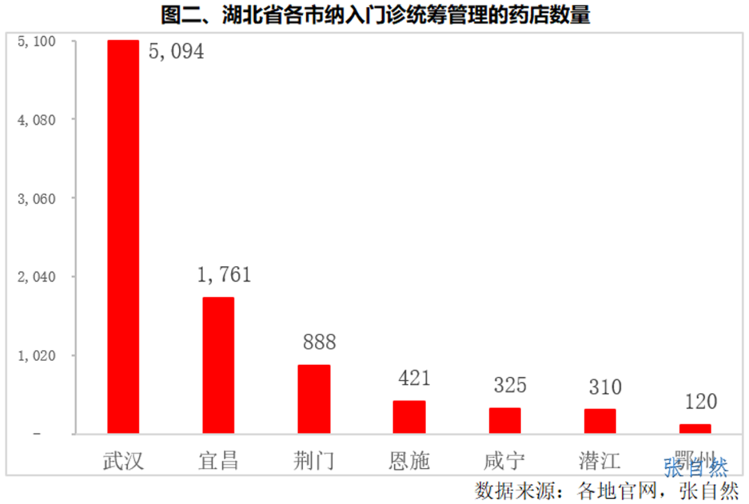 武漢對(duì)個(gè)賬分開(kāi)反映最強(qiáng)烈,湖北是納入門診統(tǒng)籌管理藥店數(shù)量最多的省份,其屬下各市納入門診統(tǒng)籌管理的藥店數(shù)量如下: