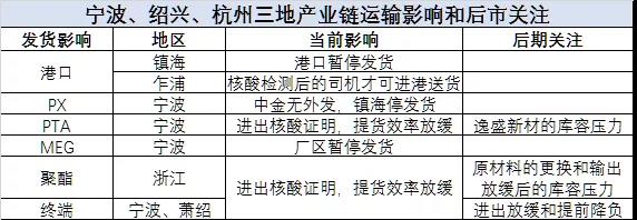 浙江防控升級(jí)的地區(qū)多為化工集中區(qū)域,匯集紡織原料生產(chǎn)、下游聚酯消費(fèi)、包括芳烴產(chǎn)業(yè)、聚烯烴產(chǎn)業(yè)、還有?;飞a(chǎn)等。其中,鎮(zhèn)海地區(qū)作為國(guó)內(nèi)重要的石化基地,其管控升級(jí)對(duì)部分化工品的影響巨大。